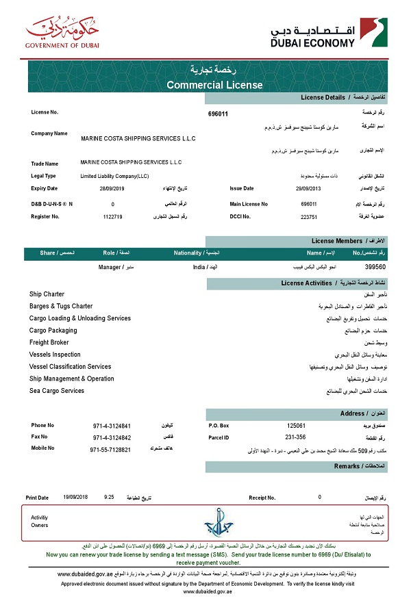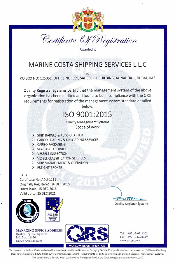 © 2018 Marine Costa Shipping Services LLC